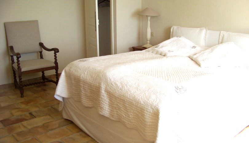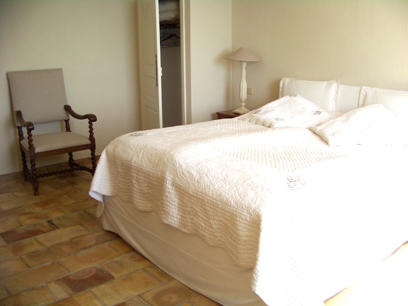 The house is set on 7000 m2 of land away from it all but still at only 2 km from the center of Vence . It is nicely furnished with simple decoration all in white and beige colors .