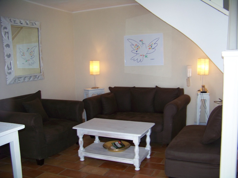 Forst you find a spacious sitting room with great openings onto the garden .There is also a TV room with all the international channels.