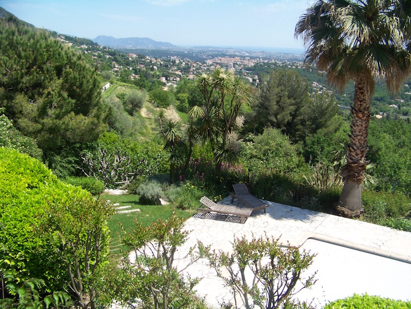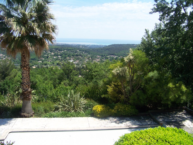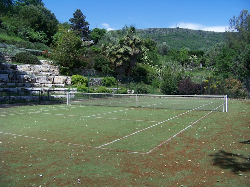 Fantastic beautiful large property pool garden tennis court and sea view located on the hills of Vence in a very residential area .