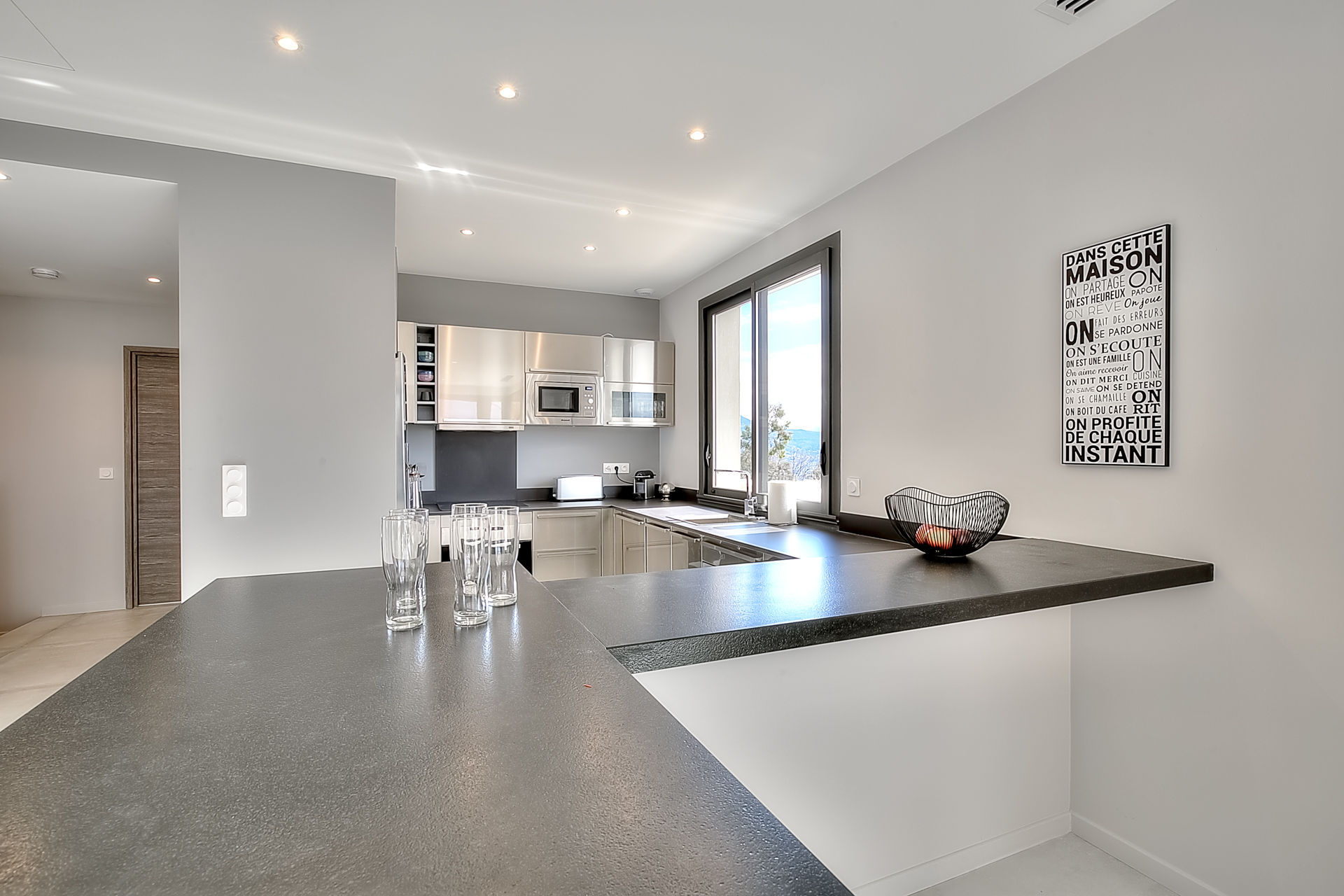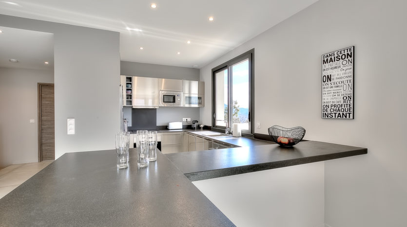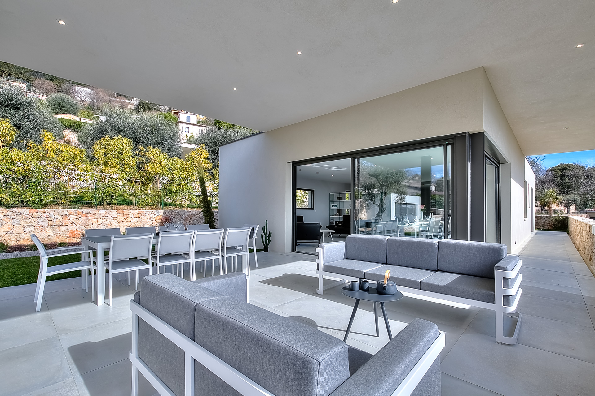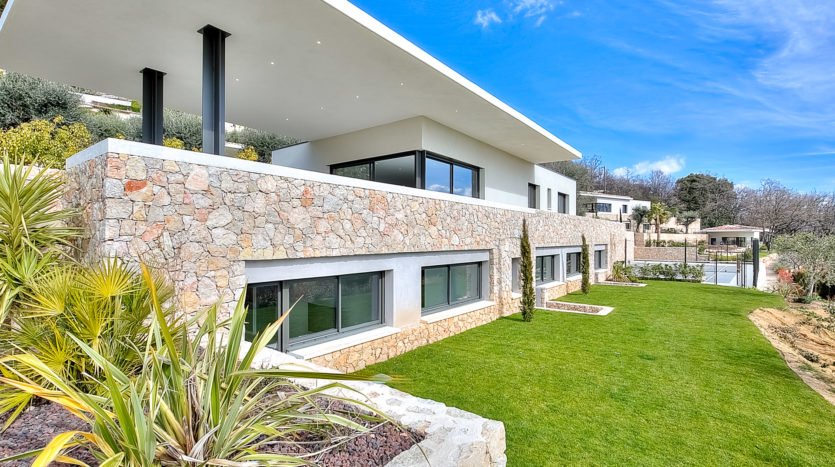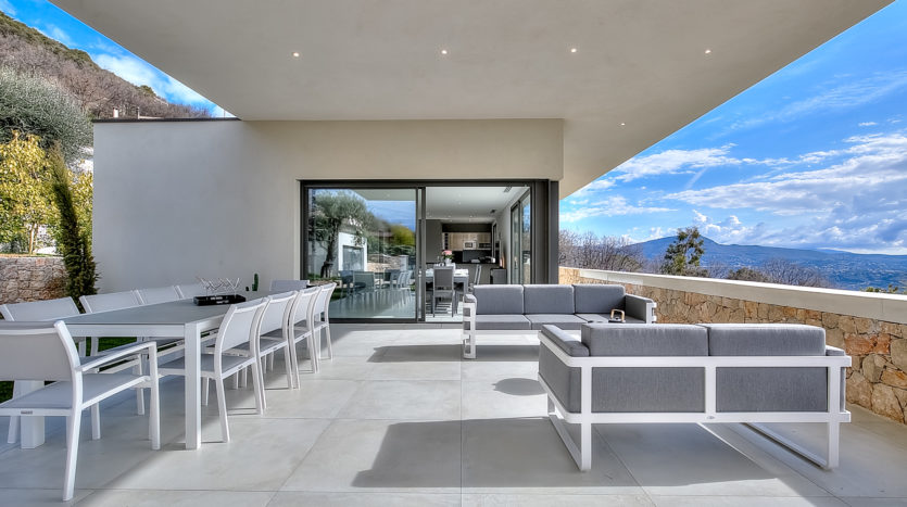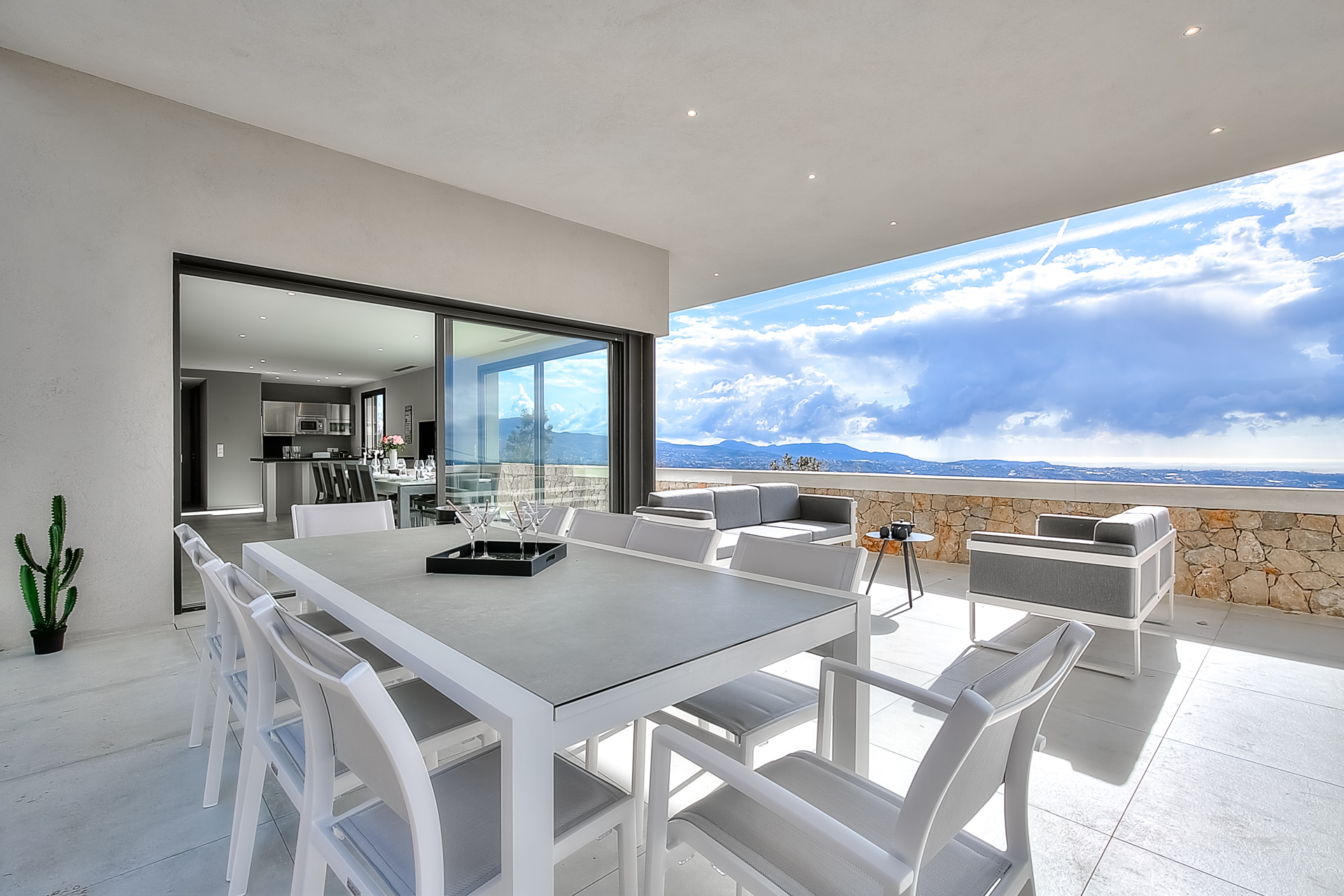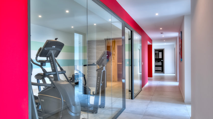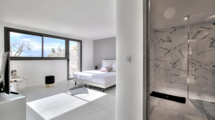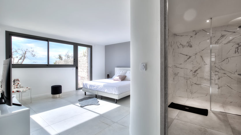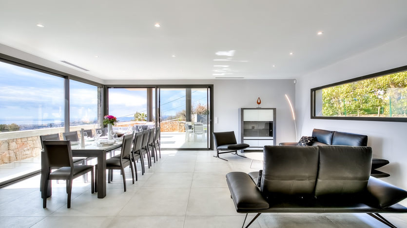 So all together the property offers a spacious and modern living area, a large terrace with bbq, 6 spacious bedrooms, 5 bath/shower rooms, a gym room a lovely pool and a tennis court . The most view is amazing . You can see the coast from Nice to Cap d’Antibes , cannes and the Esterel hills .