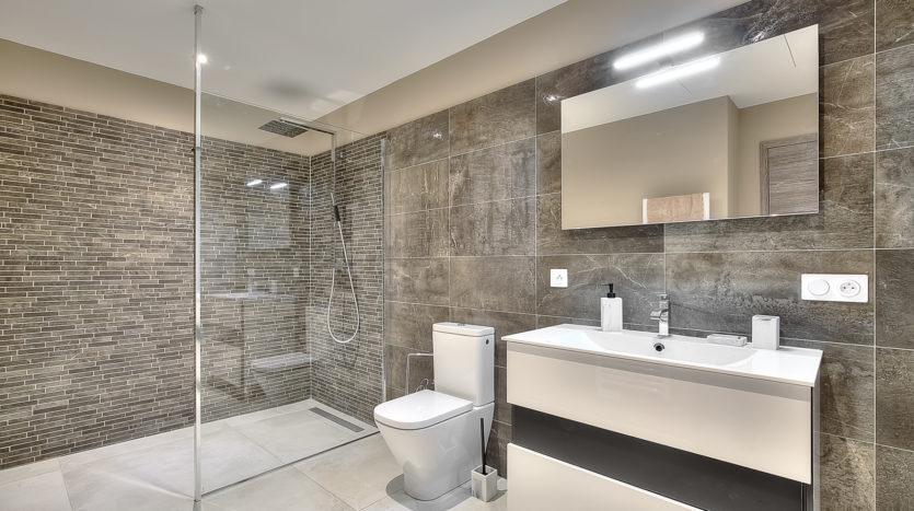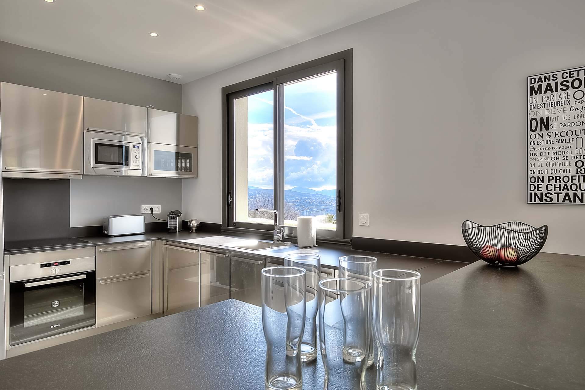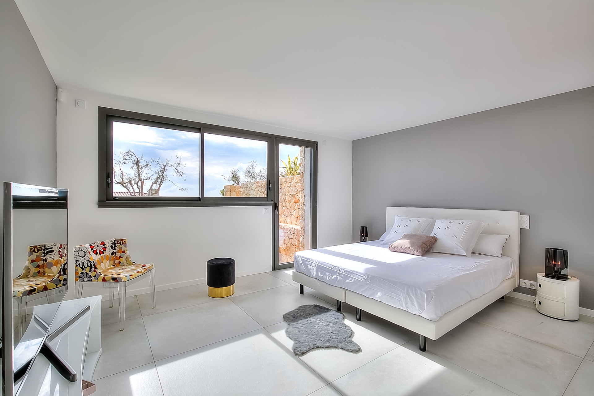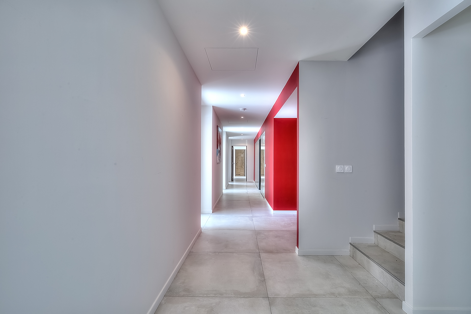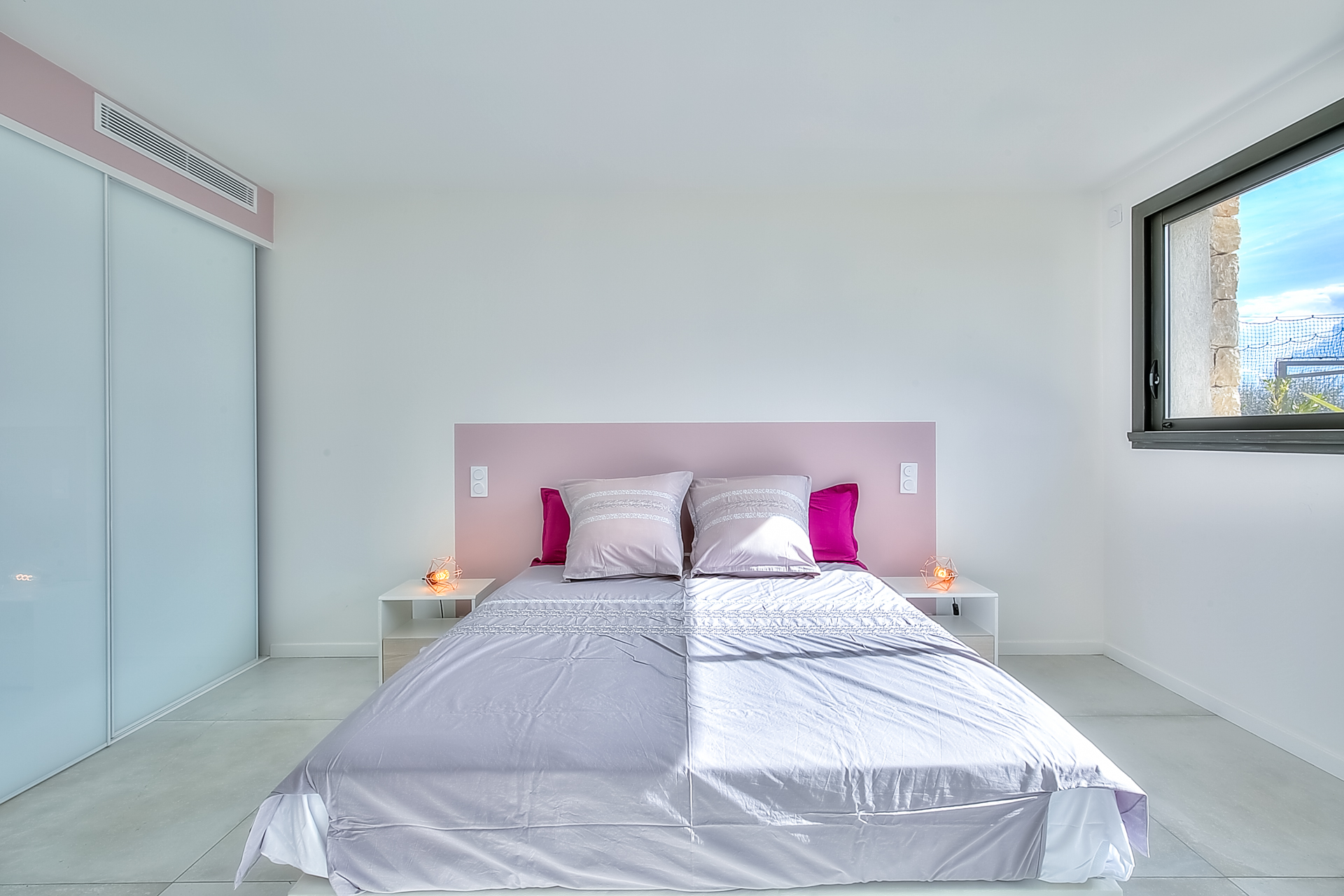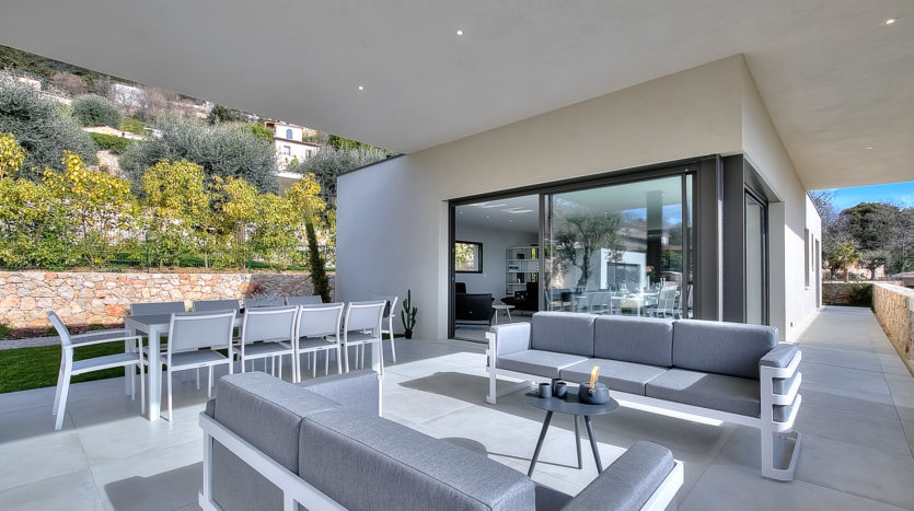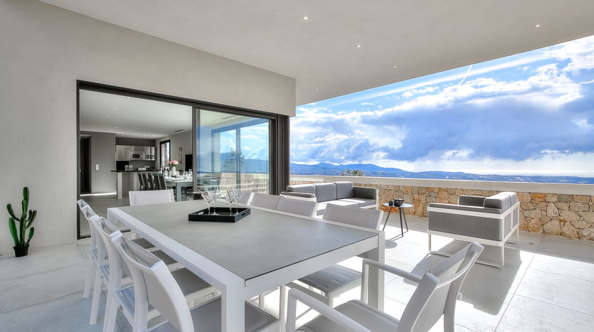 So all together the property offers a spacious and modern living area, a large terrace with bbq, 6 spacious bedrooms, 5 bath/shower rooms, a gym room a lovely pool and a tennis court . The most view is amazing . You can see the coast from Nice to Cap d’Antibes , cannes and the Esterel hills .