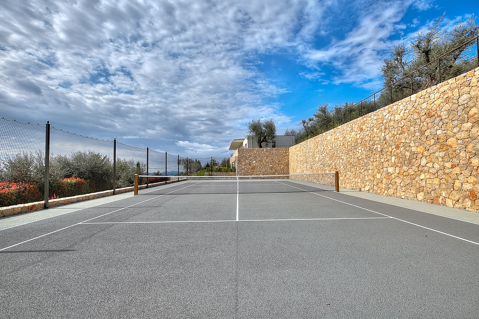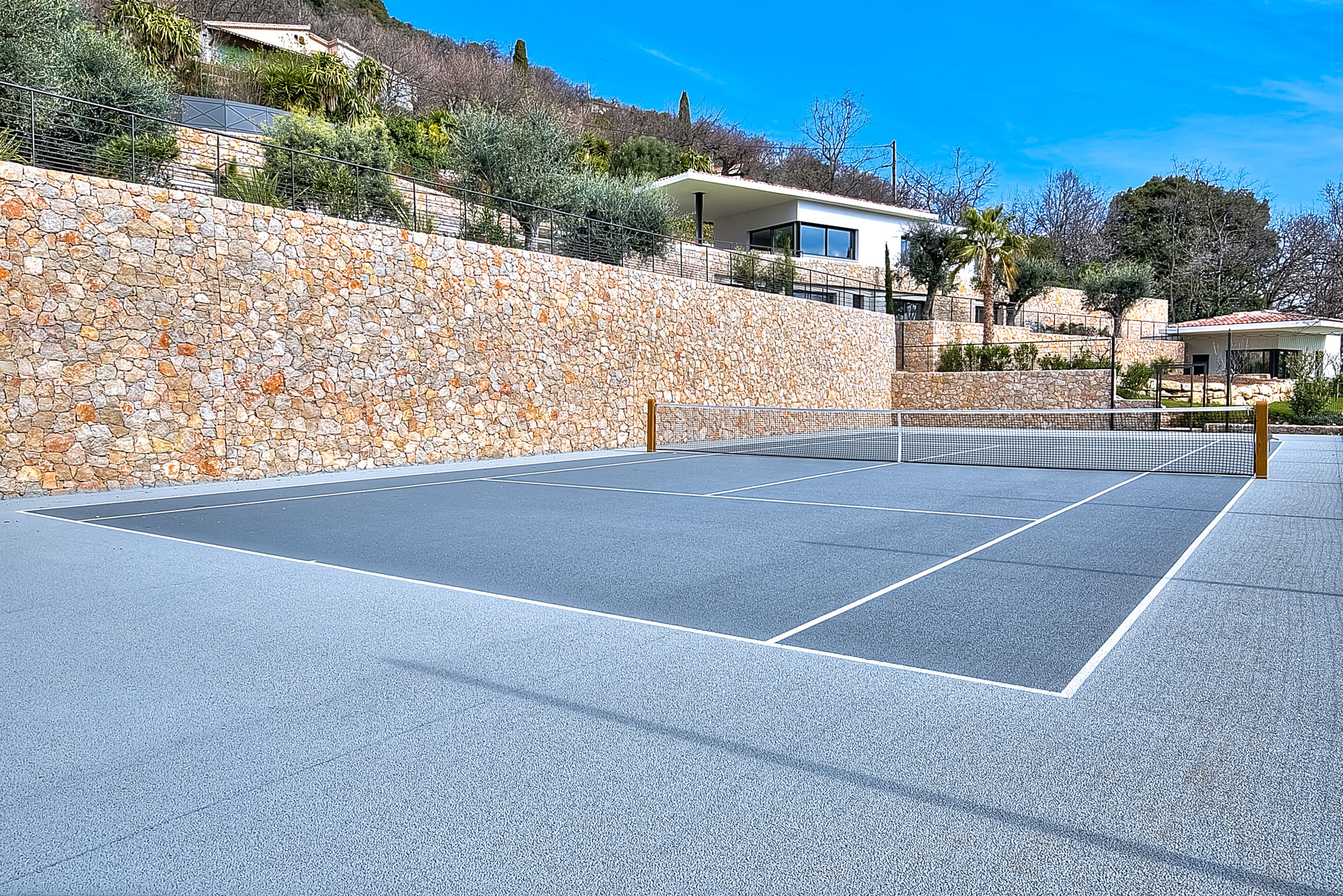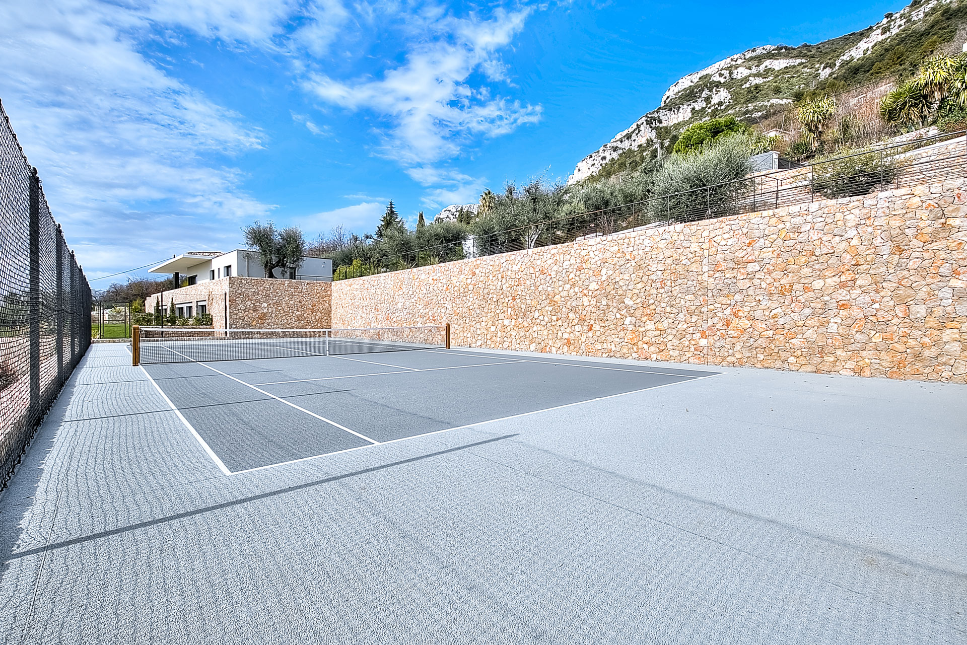 Fantastic beautiful luxury property pool garden tennis court sauna and sea view located on the hills of St Jeannet in a very residential area .