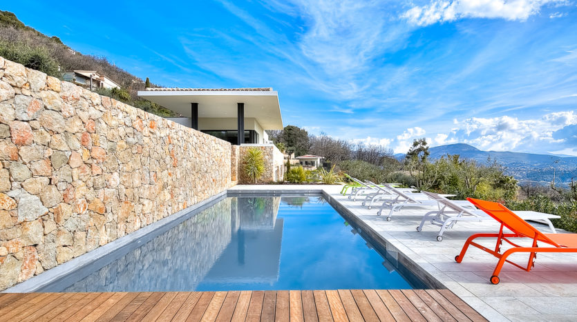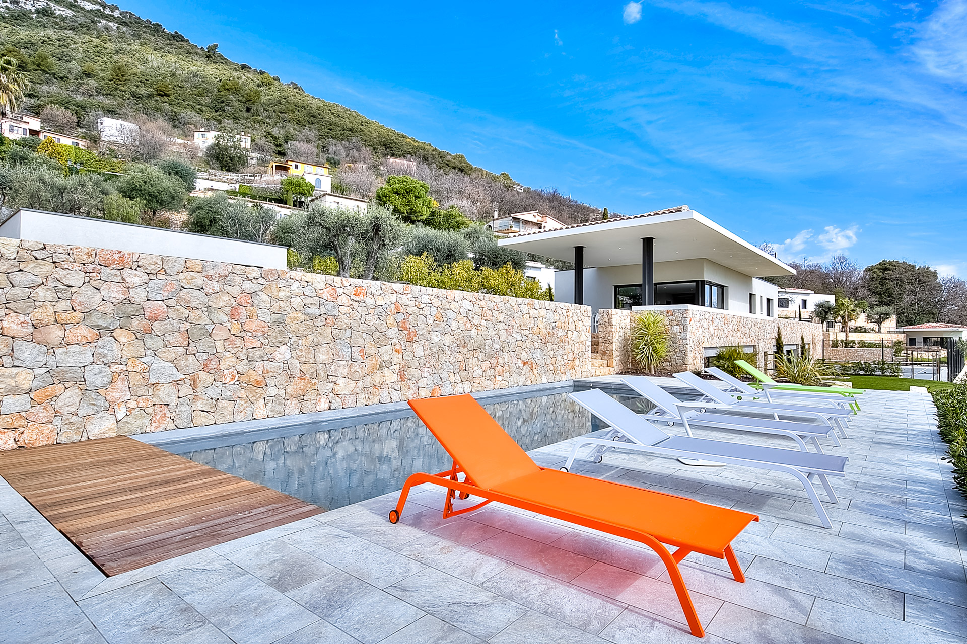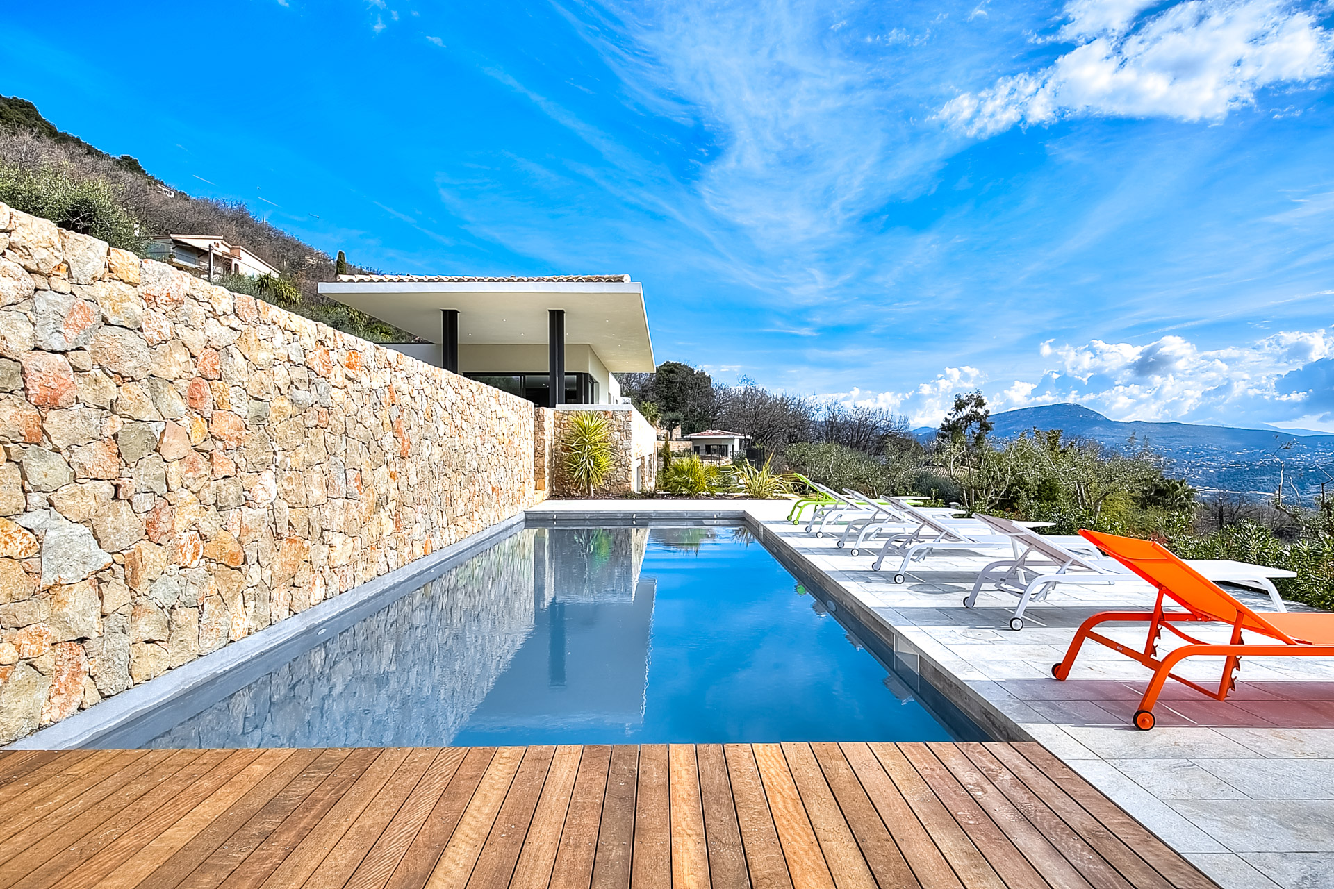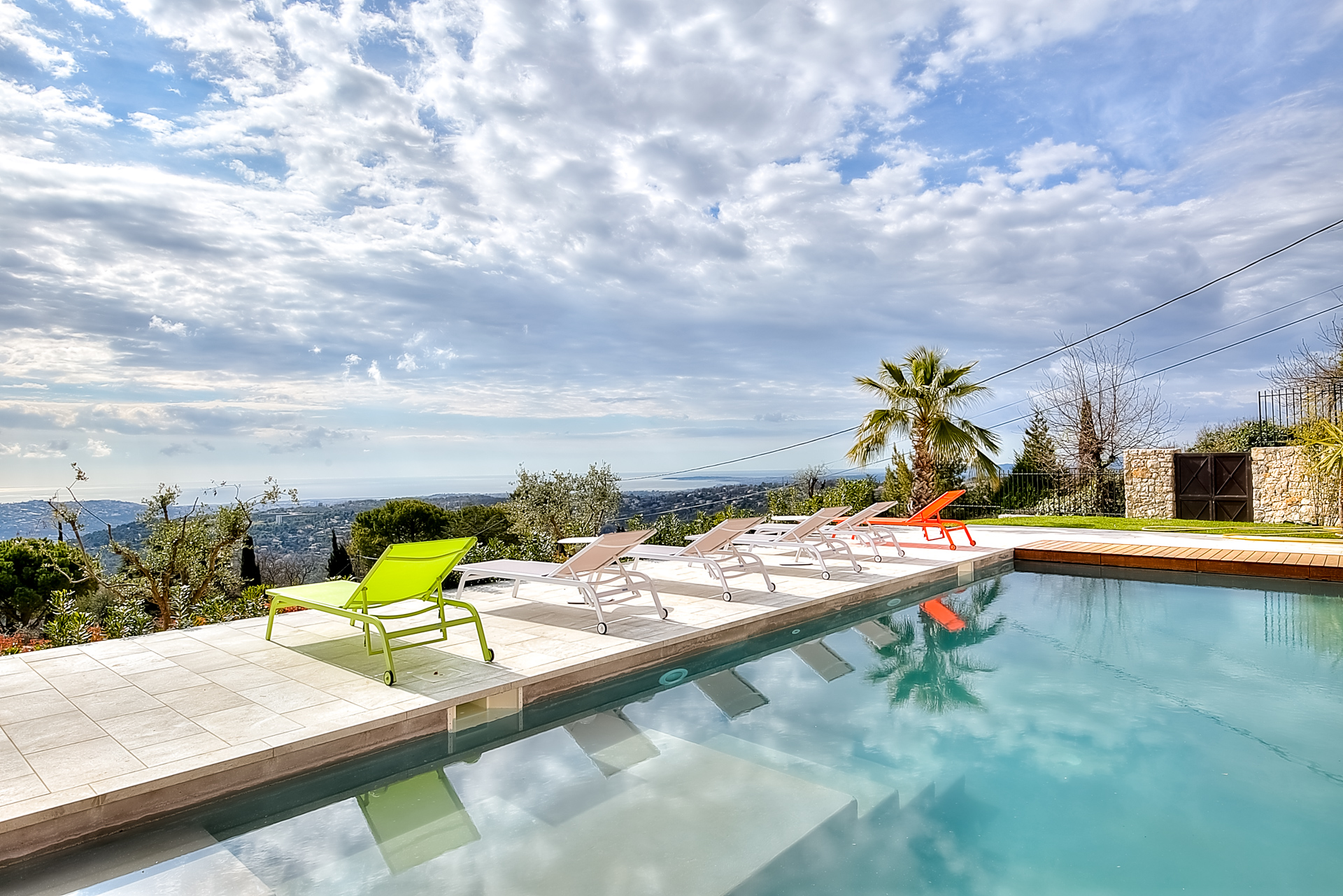Fantastic beautiful luxury property pool garden tennis court sauna and sea view located on the hills of St Jeannet in a very residential area .