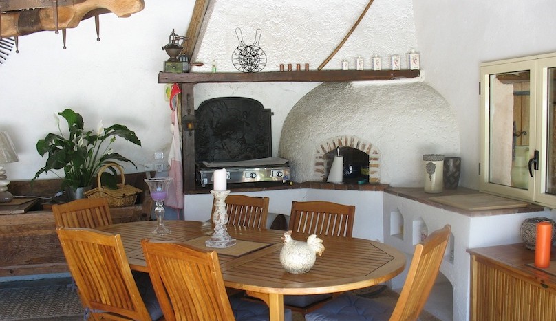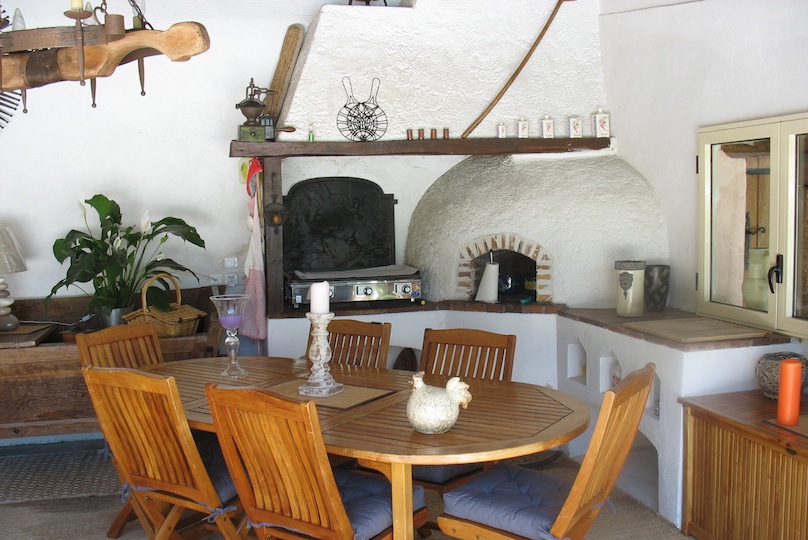 A corridor leads to the main living area, very spacious with a long family table, a sitting room with a fire place. It opens onto the terrace and the swimming pool.