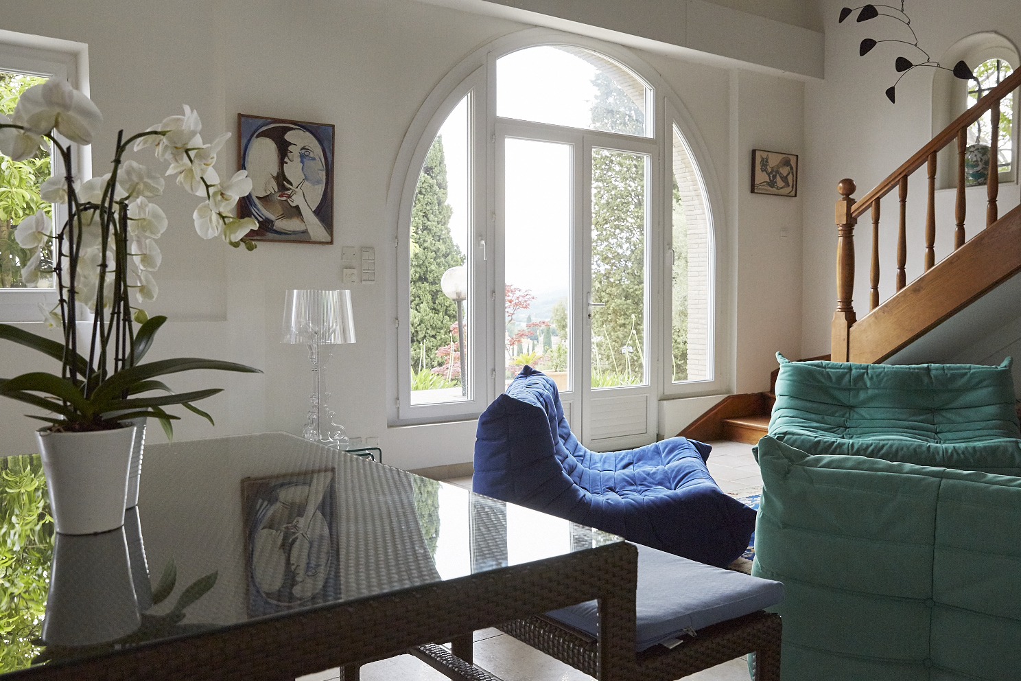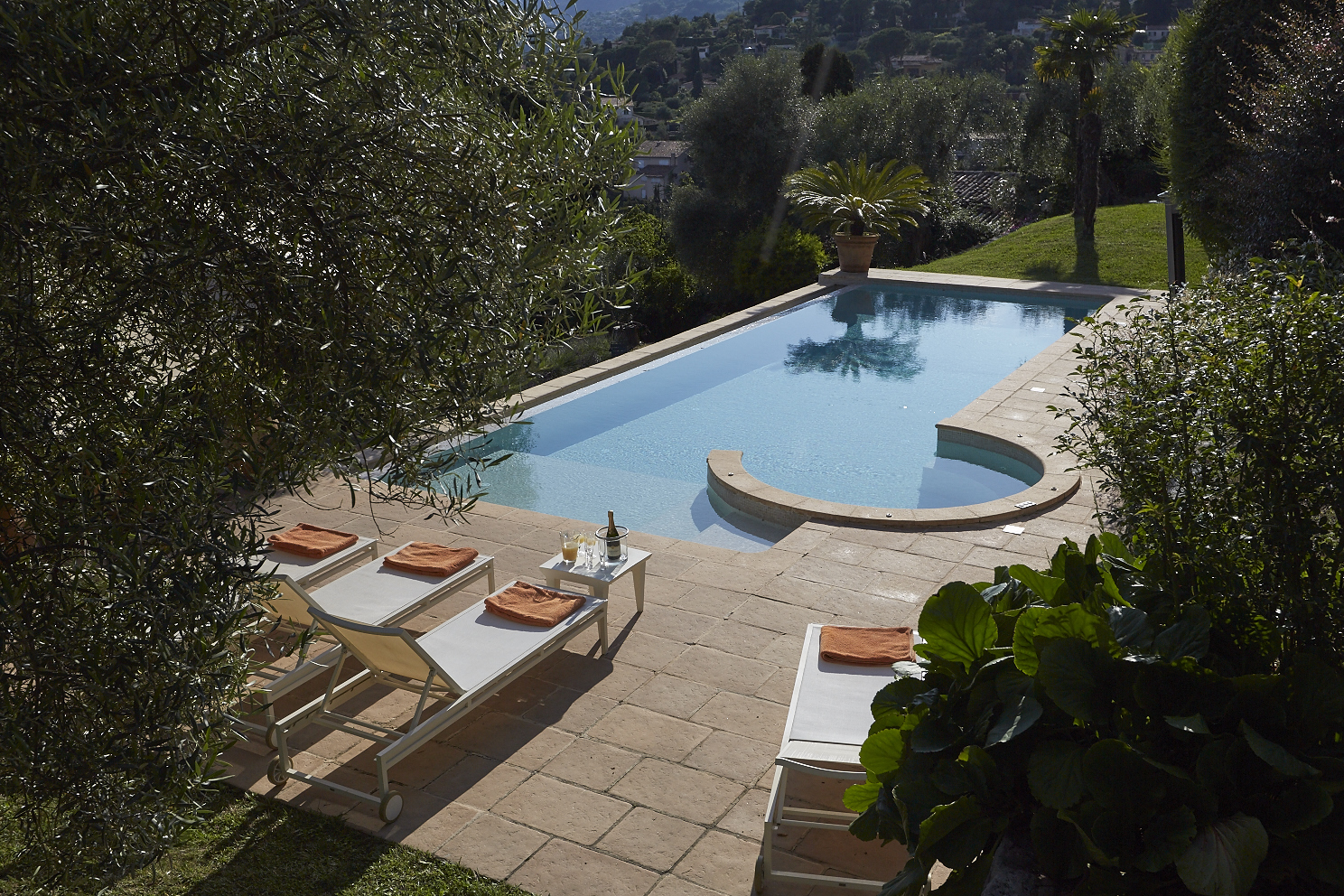 Les Amorini Vence is a beautifully decorated 5 bedroom house situated on the hills of Vence, in a residential, quiet and beautiful area. It is set on a large land with a garden with mediterranean plants, olive and palm trees, and beautiful flowers. The views are fantastic of the mountains and the sea, the surrounding area is exceptional. The infinity pool has a jacuzzi and looks amazing when lit at night.